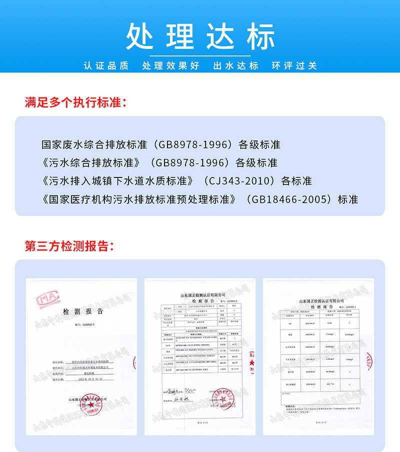 8、處理效果好:廢水處理量大、處理速度快、處理效果好,符合國家排放標(biāo)準(zhǔn),可直接排入市政排污管網(wǎng)。
