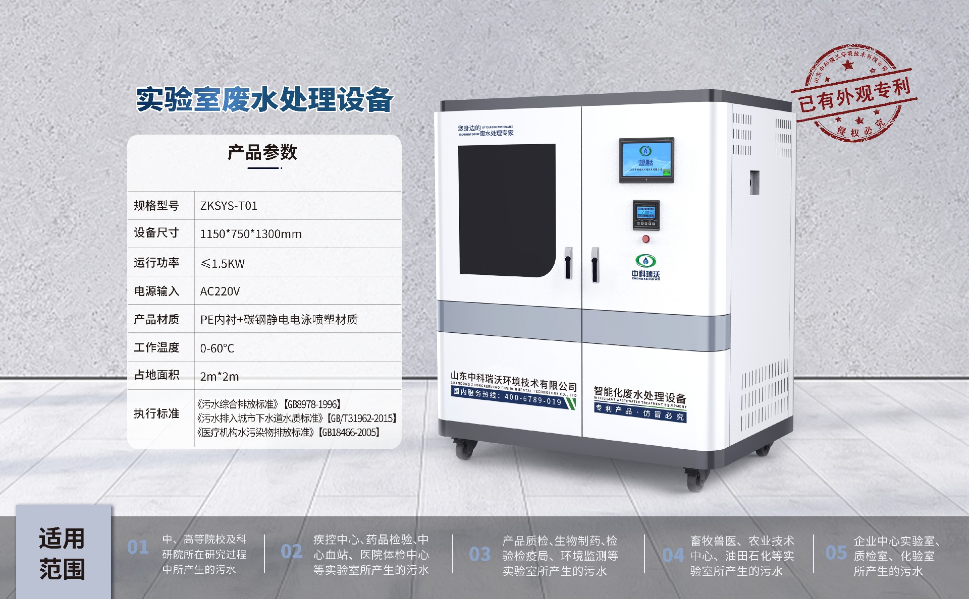 該設備被廣泛應用于中、高院校、科研院所、醫(yī)療機構(gòu)、生物制藥、疾控中心、環(huán)監(jiān)、產(chǎn)品質(zhì)檢、檢疫檢驗、藥品檢驗、血站、畜牧、醫(yī)院、石油化工、企業(yè)等實驗室、化驗室的綜合廢水處理,憑借穩(wěn)定性能,優(yōu)質(zhì)處理結(jié)果,受到廣大客戶的一直好評。